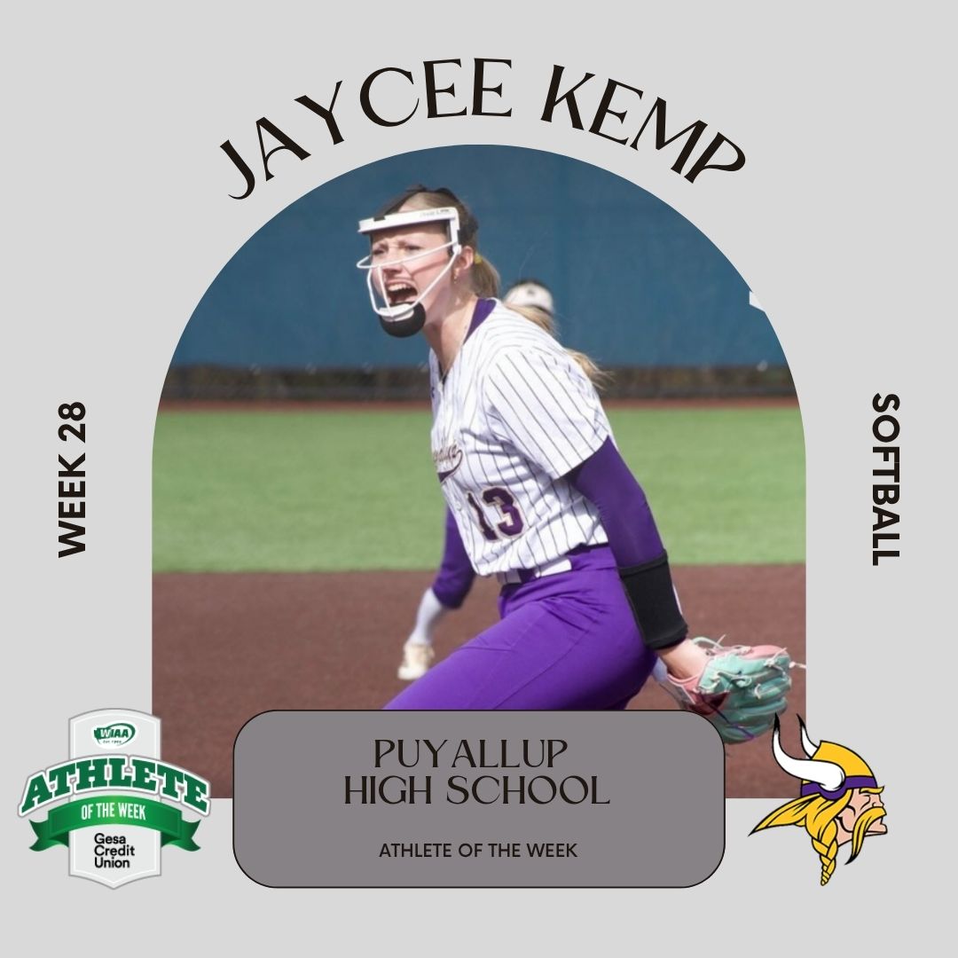 WIAA 2025-2026 Week 28 - Jaycee Kemp Freshman Jaycee Kemp made an impressive high school debut, throwing a no-hitter with 10 strikeouts against Seattle Christian. Her dominant performance highlights a bright future ahead in the circle. |