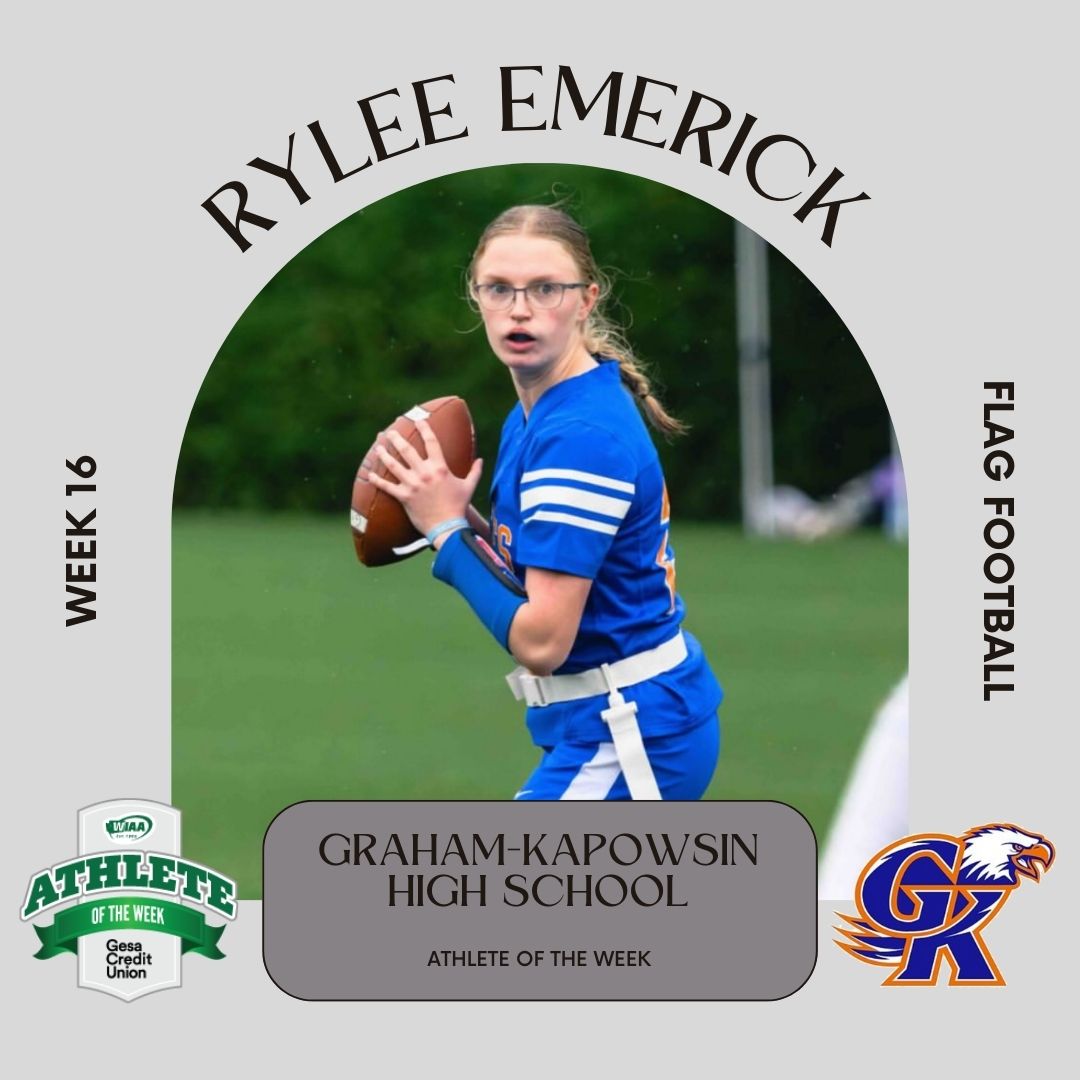 Senior quarterback Rylee Emerick led Graham-Kapowsin to two wins this week, throwing for 8 touchdowns and adding another on the ground. A two-way player, she also made a major defensive impact playing both safety and linebacker with numerous flag pulls. Off the field, Rylee is a 4-year band member and carries a 3.9 GPA.WIAA 2025-2026 Week 16 - Rylee Emerick